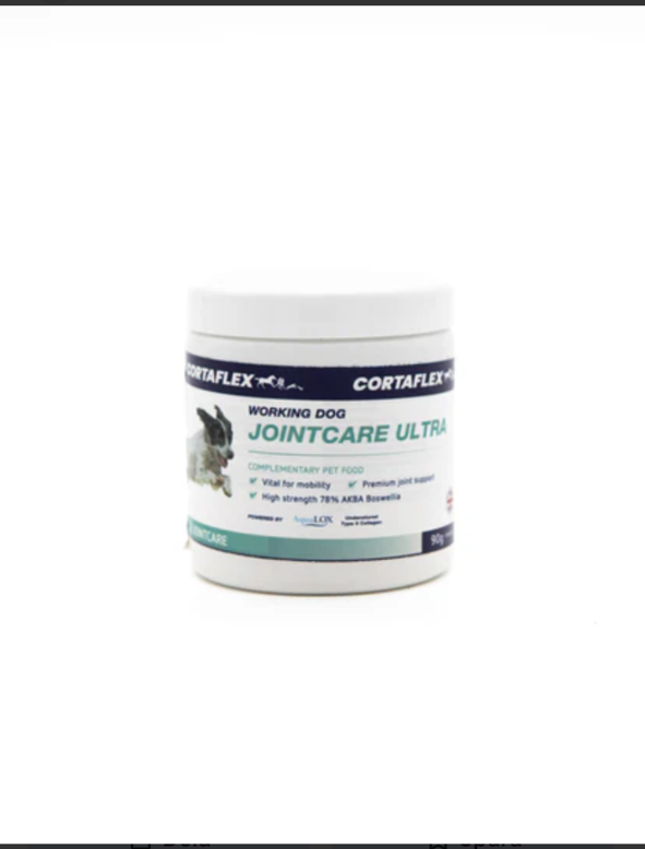 Cortaflex working dog pulver innehåller naturliga ingredienser för att stödja leder och rörlighet hos aktiva hundar.